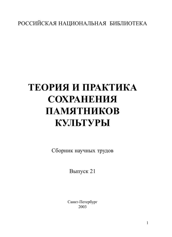 Теория и практика сохранения памятников культуры. Вып. 21